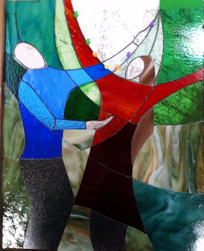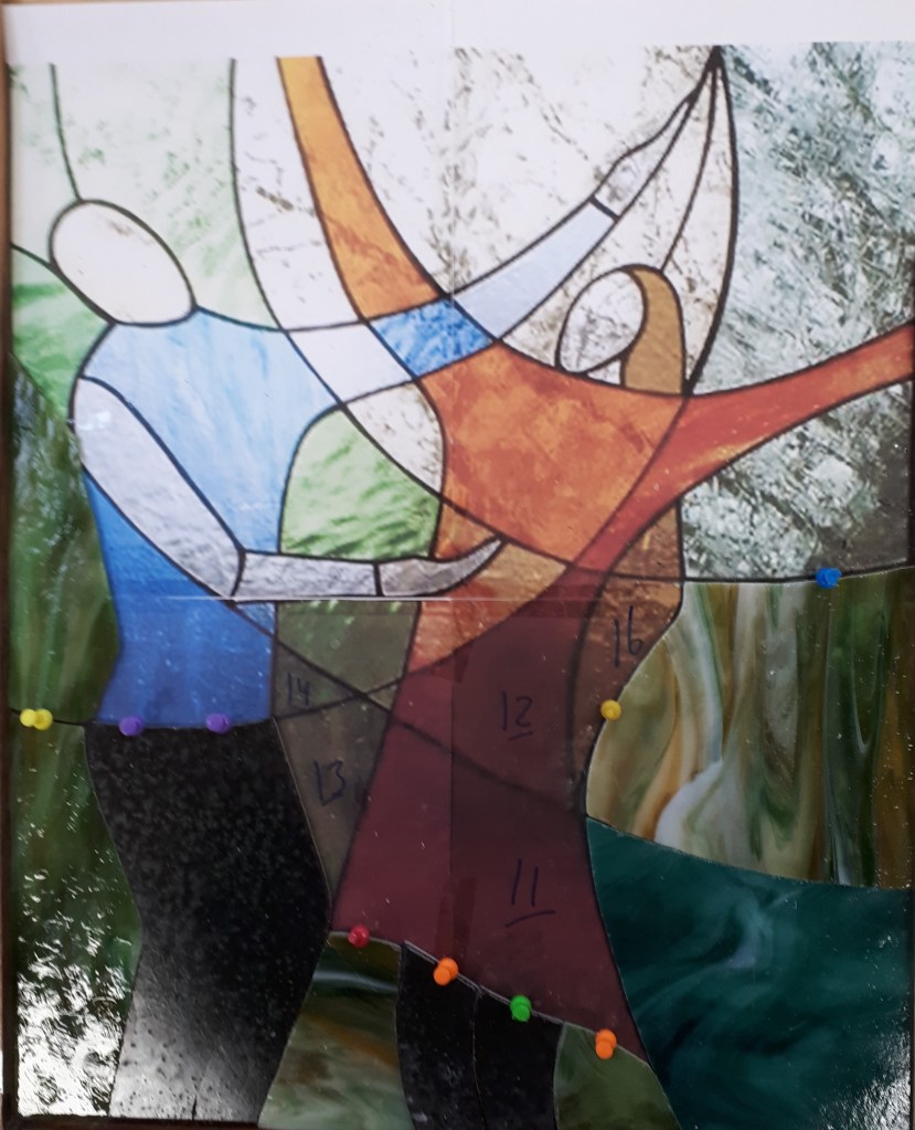 13 Februari! Onder tussen schiet het project aardig op. Als het goed gaat krijg het 21 februari af althans helemaal in glas, en dan nog foliën. Daar ben ik ook nog wel een tijdje zoet mee. En om het helemaal af te maken moet het ook nog gesoldeerd worden en gepatineerd. Ben benieuwd hoeveel weken ik nog bezig ben!!