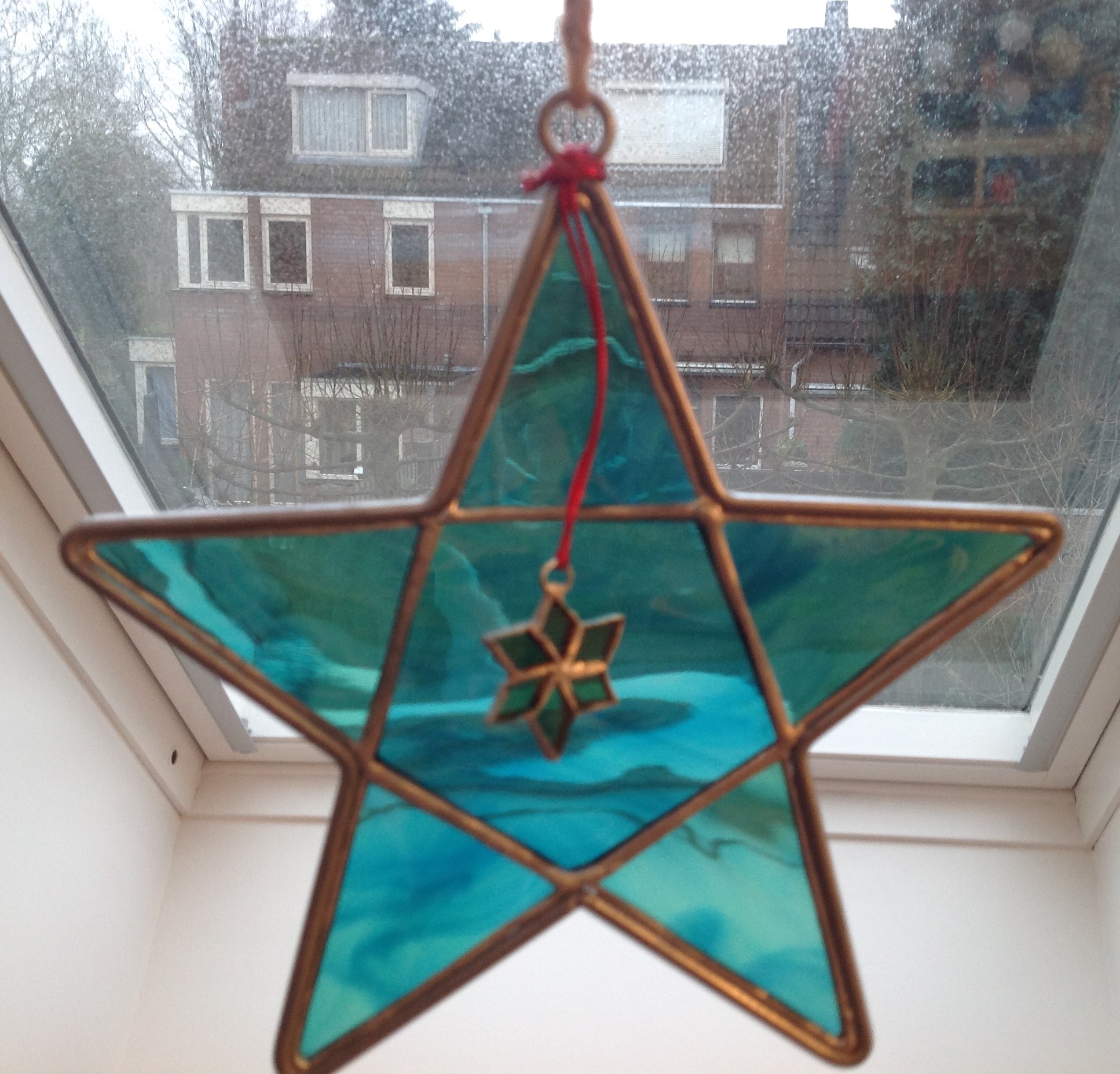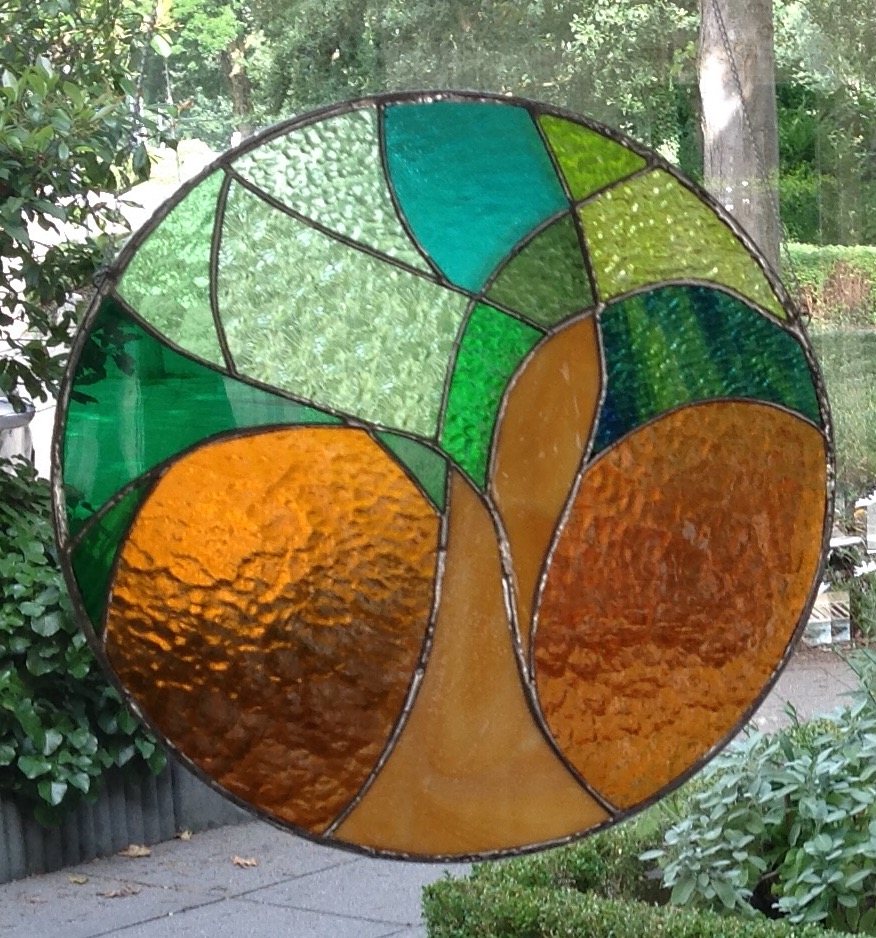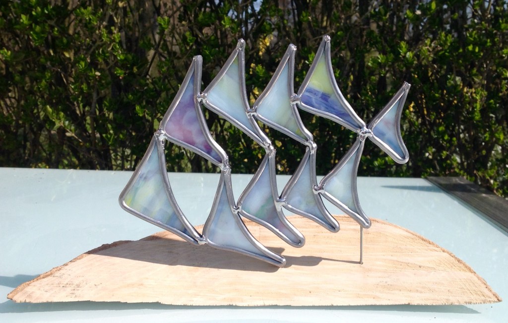 Een vis gemaakt van rest glas en geplaatst op een stukje boomschors dat ik vond in het park!