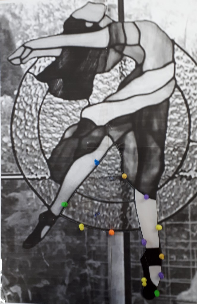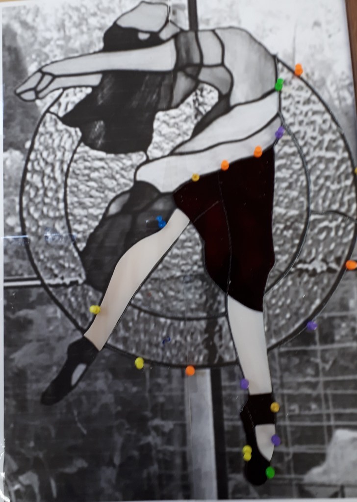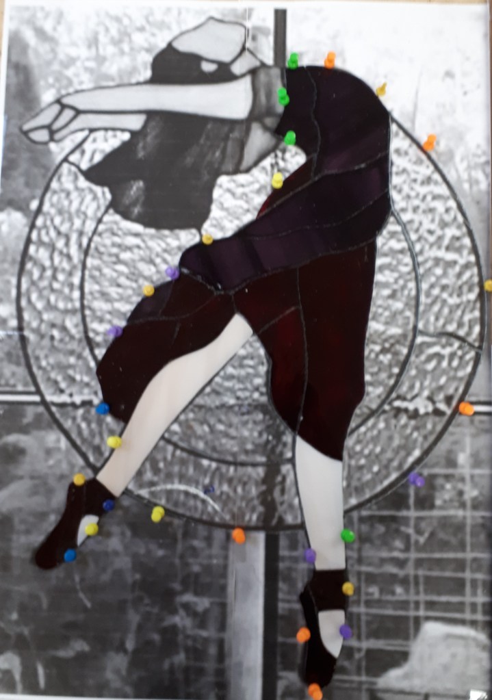 24 oktober De jurk is een heel eind af! De jurk bestaat uit gevlamd rood en paars glas. Des te spannender als ze klaar is en ik haar tegen het licht kan houden!